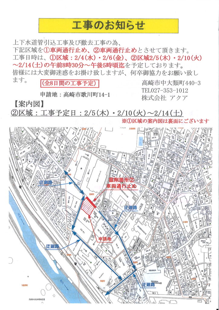 駐車場入口前の道路工事状況について